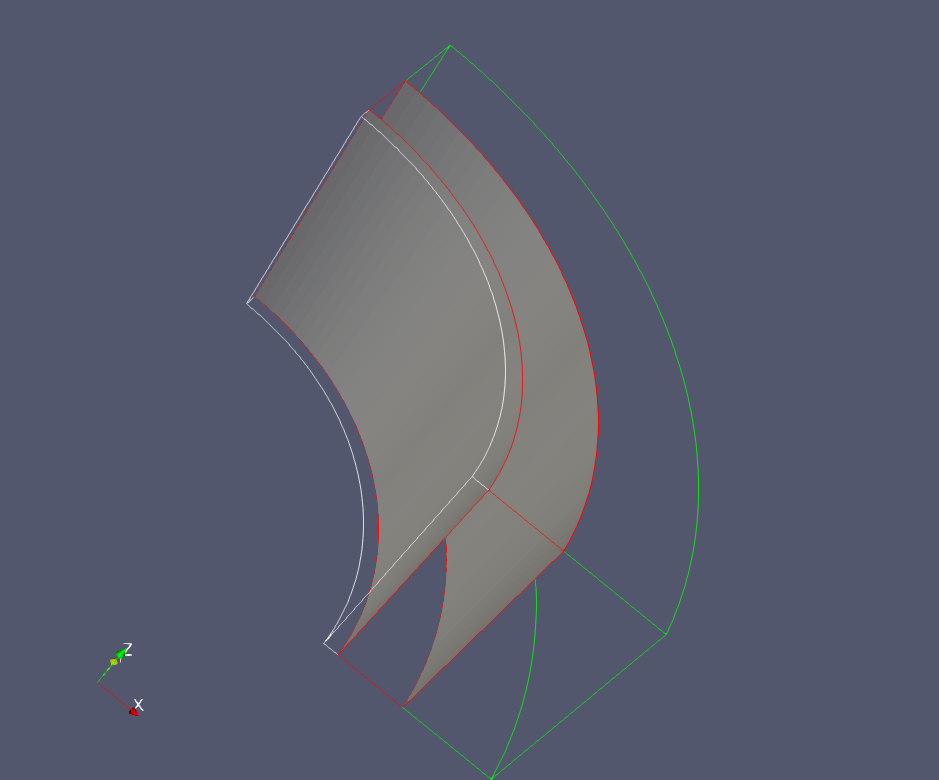 The nodesets that define the casing-cement and cement-rock interfaces are curved. In this example, we use the Cylinder geometry to select these nodesets. This geometry is defined by the centers of the two plane faces, firstFaceCenter and secondFaceCenter, and its inner and outer radii, innerRadius and outerRadius. Note that the inner radius is optional as it is only needed for defining a hollow cylinder (i.e. an annulus). The inner radius is required in this example to select only the nodes on the casing-cement and the cement-rock interfaces.