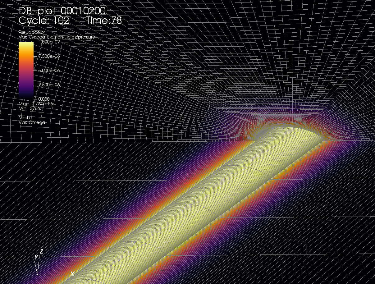 The coupled Poroelastic solver, that defines a coupling strategy between the solid mechanics solver SolidMechanicsLagrangianFEM and the single phase flow solver SinglePhaseFVM, is required for solving this wellbore problem.